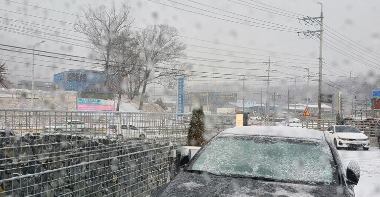 양주시청에서 멀지않은 경기섬유종합지원센터 건너편에 멋진 대형 카페가 있다고 알음알음 소문이 퍼지고 있어서 가봅니다. 일기예보도 그렇고 날씨가 어제와 다르게 찌뿌둥 했지만, 약간의 비나 흩뿌리고 말겠지 하고 길을 나섰는데 카페에 있는 동안과 돌아오는길에 눈이 제법내려 살금살금 돌아왔어요.
