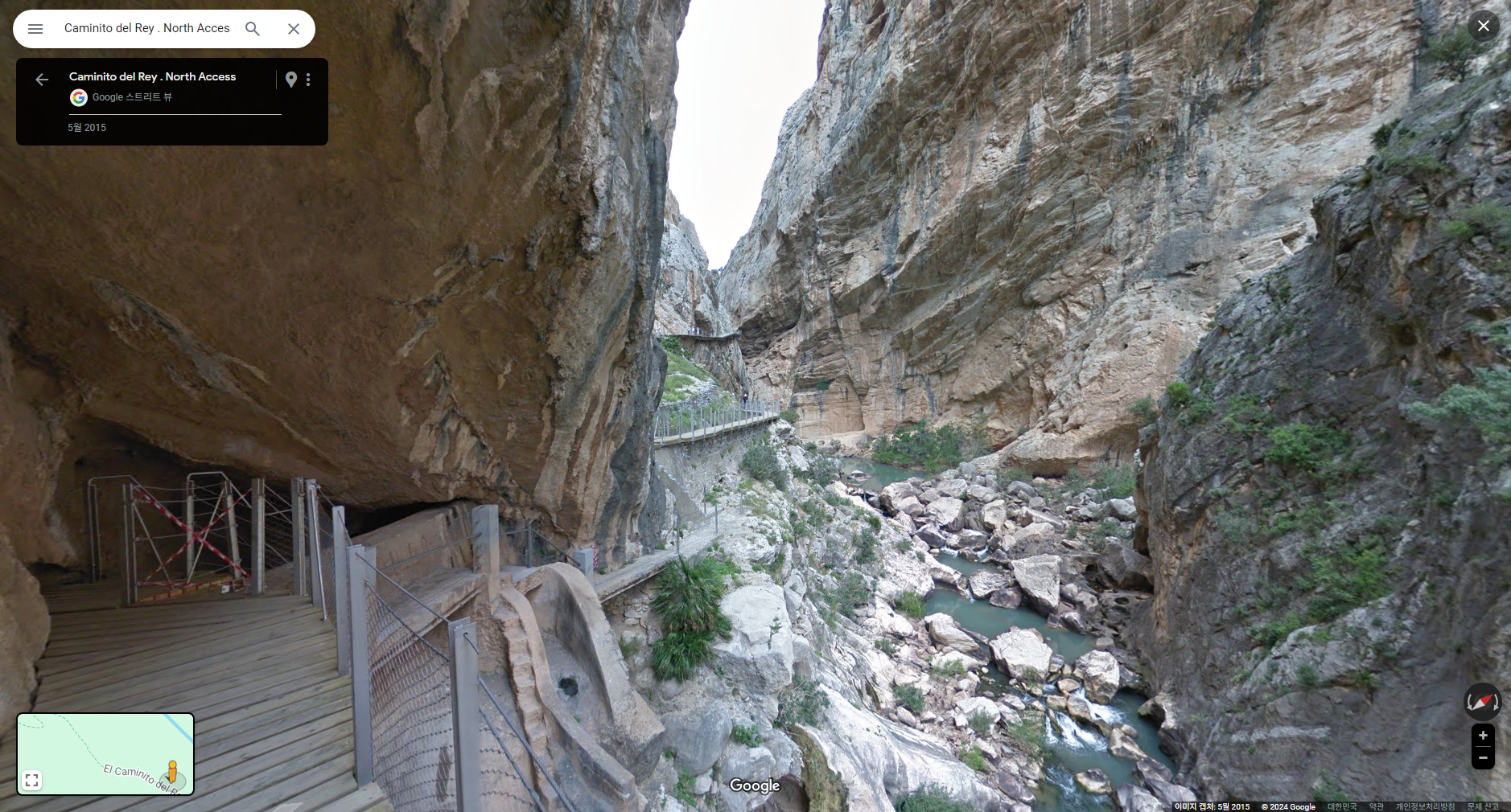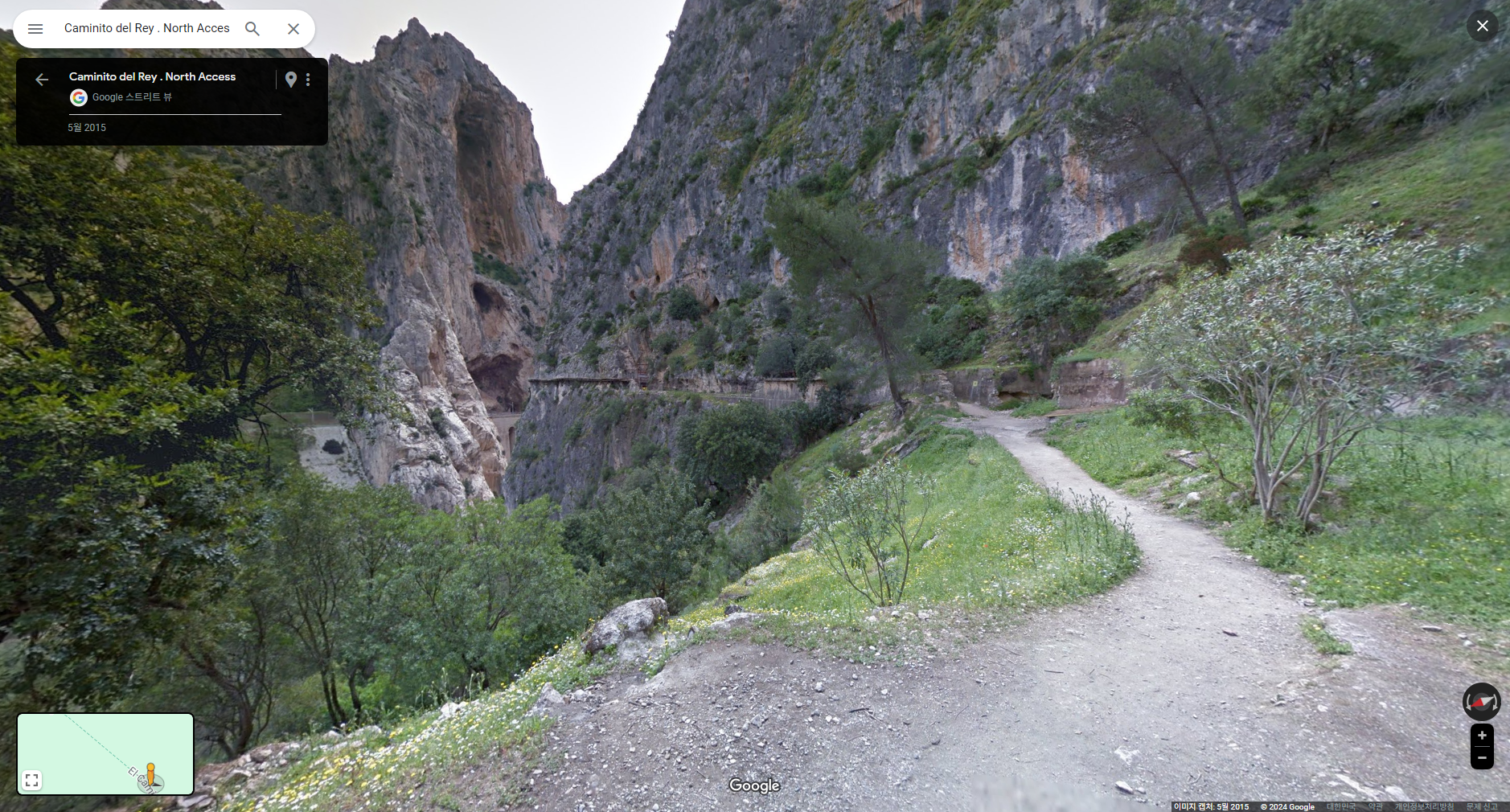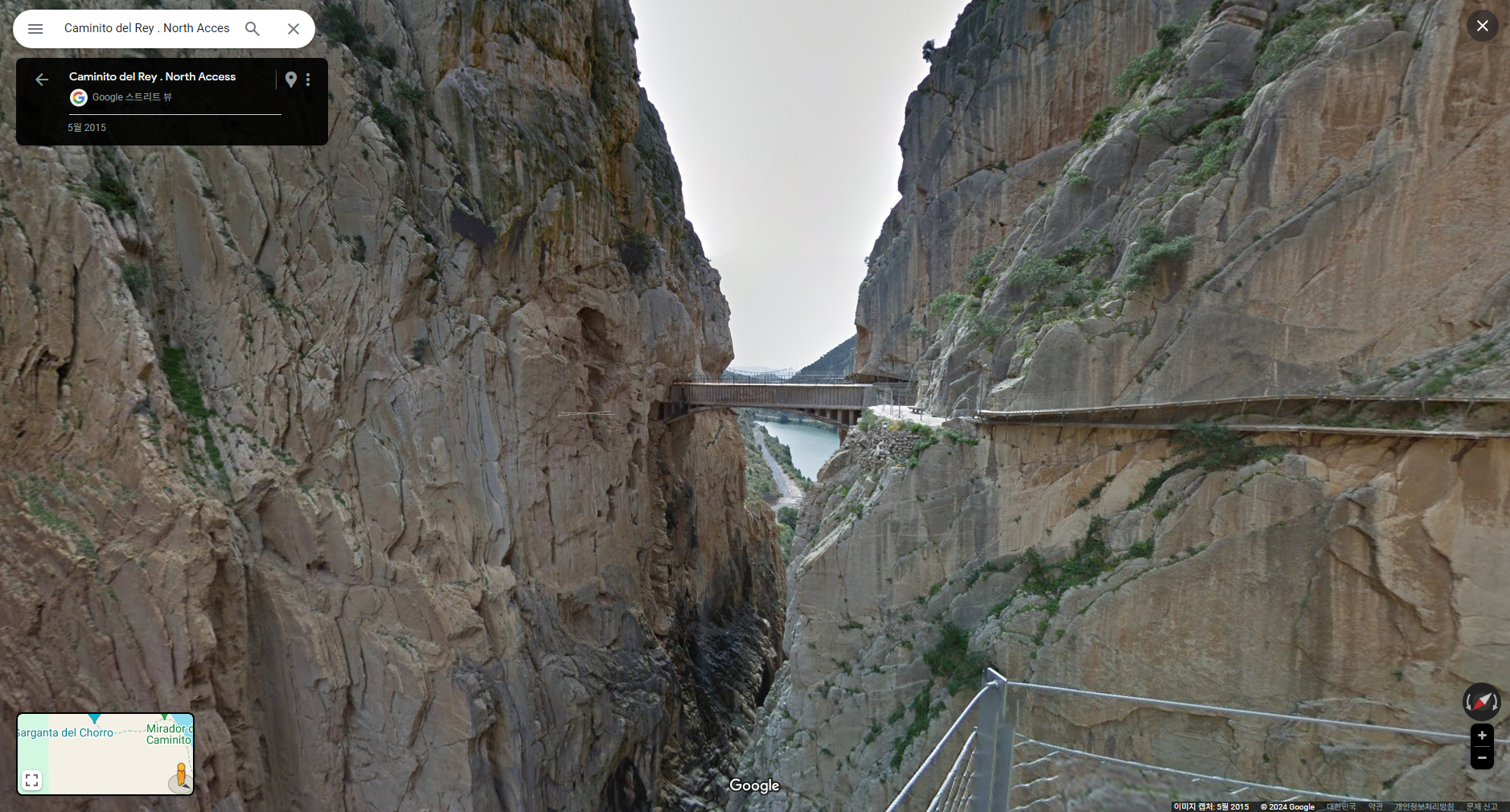 :: 스페인 엘초로 El Chorro 지역 "왕의 오솔길 Caminito del Rey"입니다. JTBC 톡파원25시 240122 방송분에 방영되어 찾아 본 장소입니다. 구글맵에서는 한글 "왕의오솔길"로는 검색이 안되고 "Caminito del Rey . North Access"로 검색하면 촬영 출발점인 댐과 발전소,정수장이 있는 장소가 나옵니다. 도착점도 'Caminito del Rey - South Exit"로 지명 표시가 되어 있습니다.