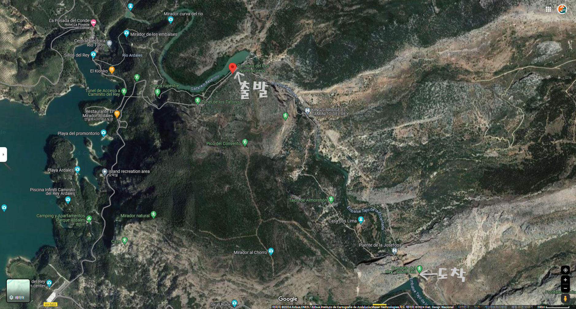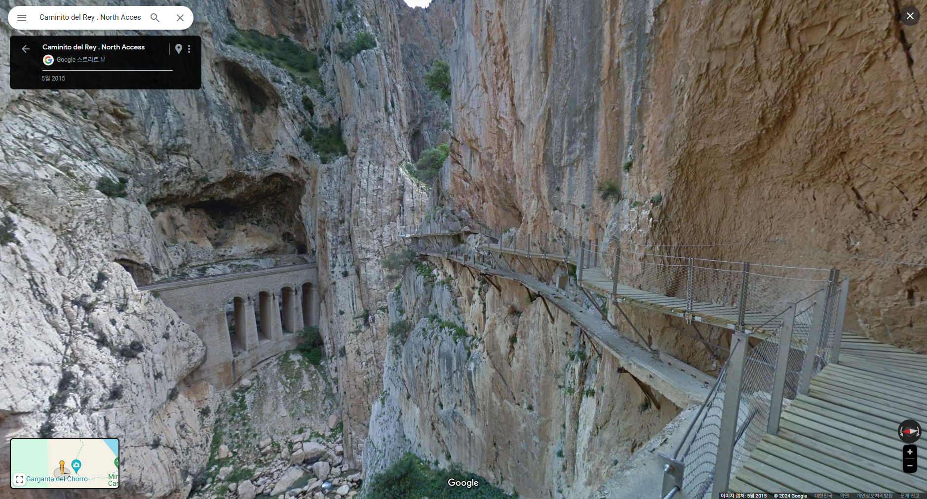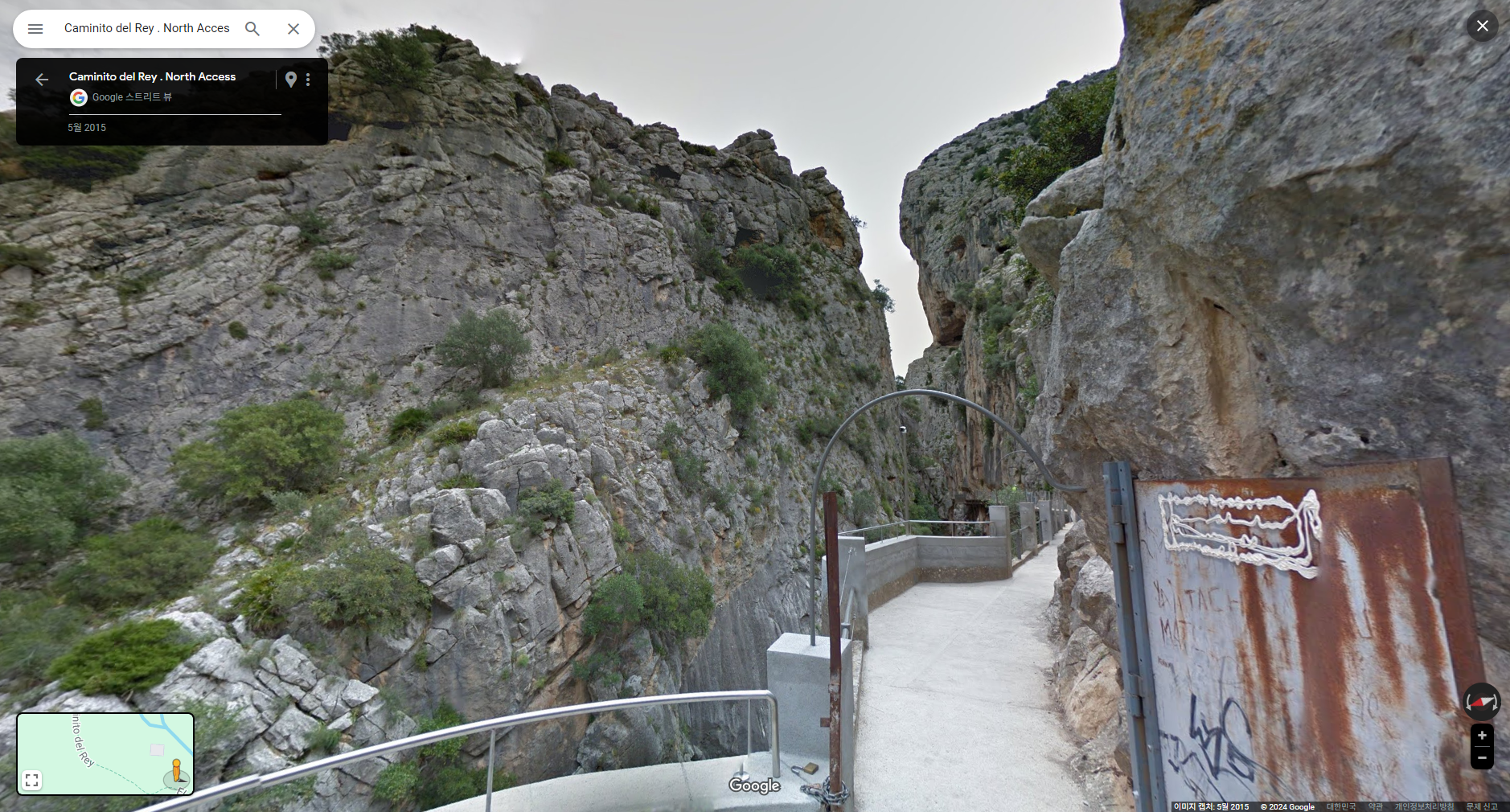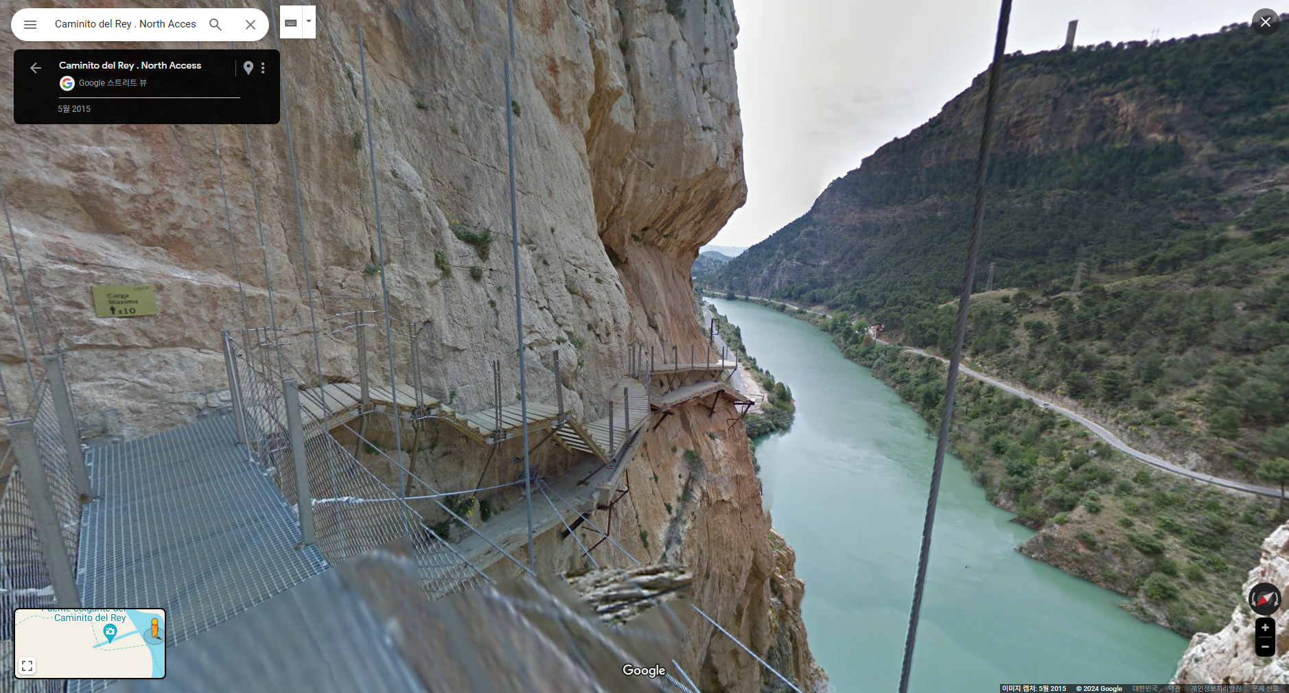 :: 스페인 엘초로 El Chorro 지역 "왕의 오솔길 Caminito del Rey"입니다. JTBC 톡파원25시 240122 방송분에 방영되어 찾아 본 장소입니다. 구글맵에서는 한글 "왕의오솔길"로는 검색이 안되고 "Caminito del Rey . North Access"로 검색하면 촬영 출발점인 댐과 발전소,정수장이 있는 장소가 나옵니다. 도착점도 'Caminito del Rey - South Exit"로 지명 표시가 되어 있습니다.