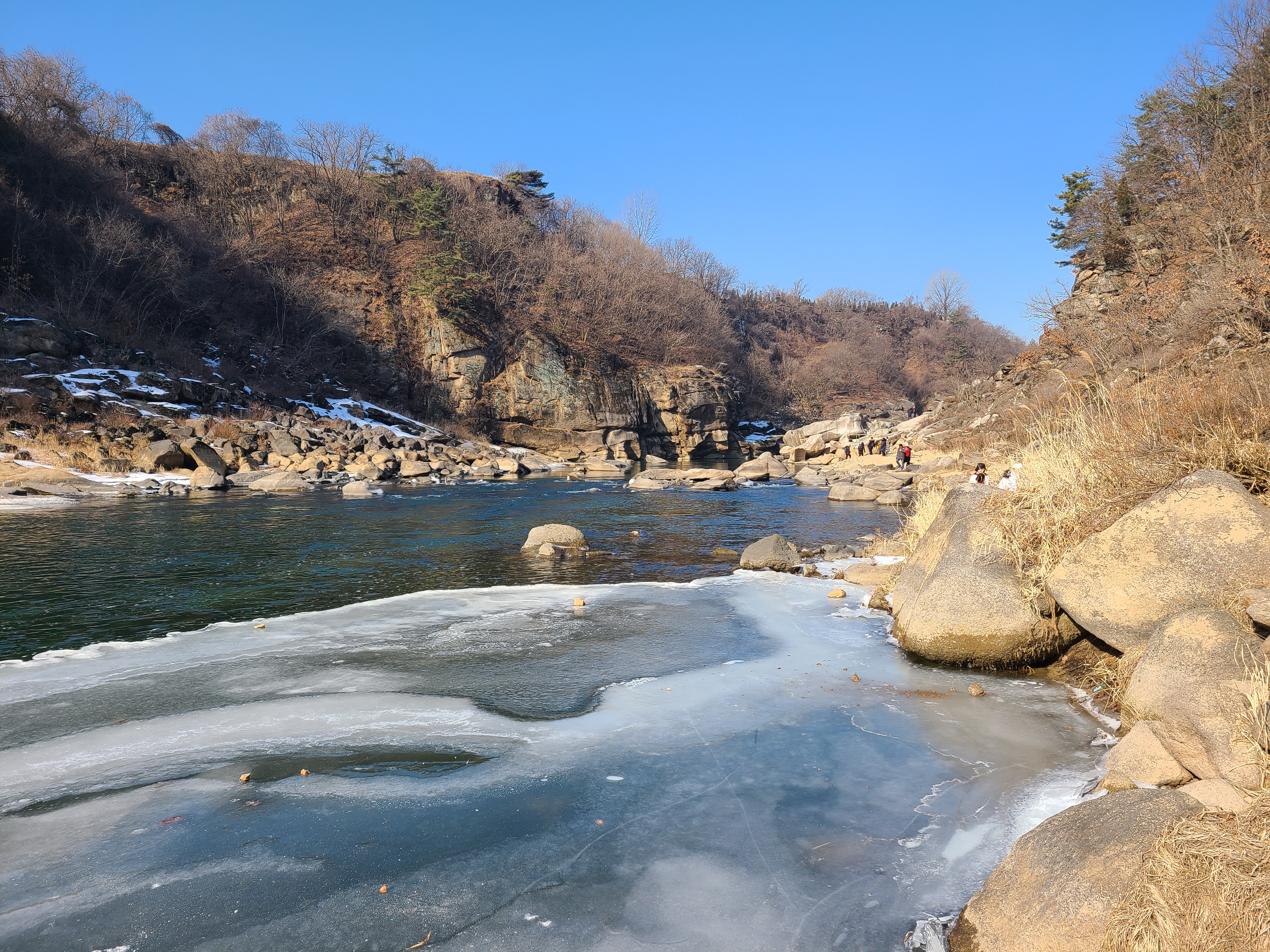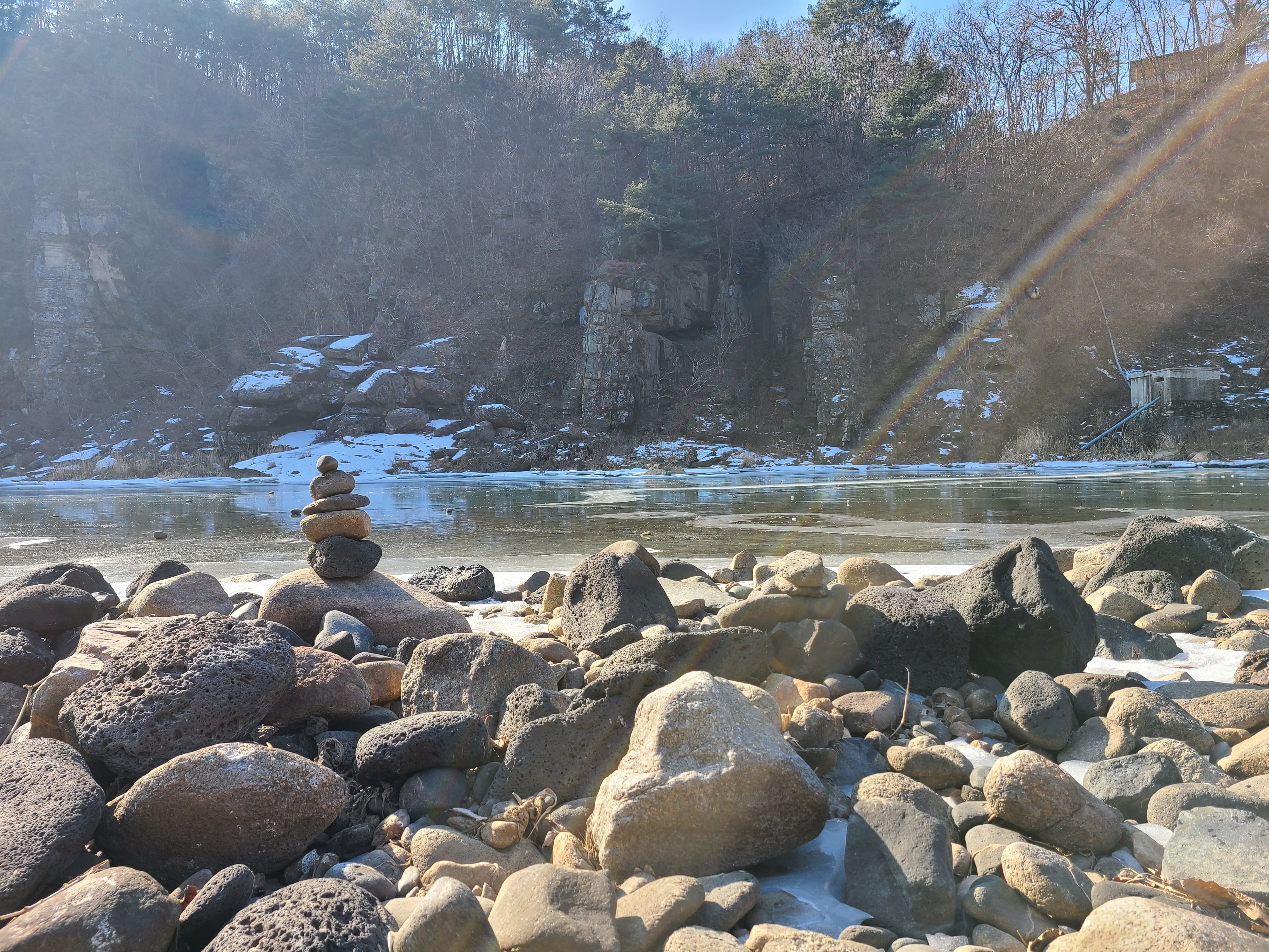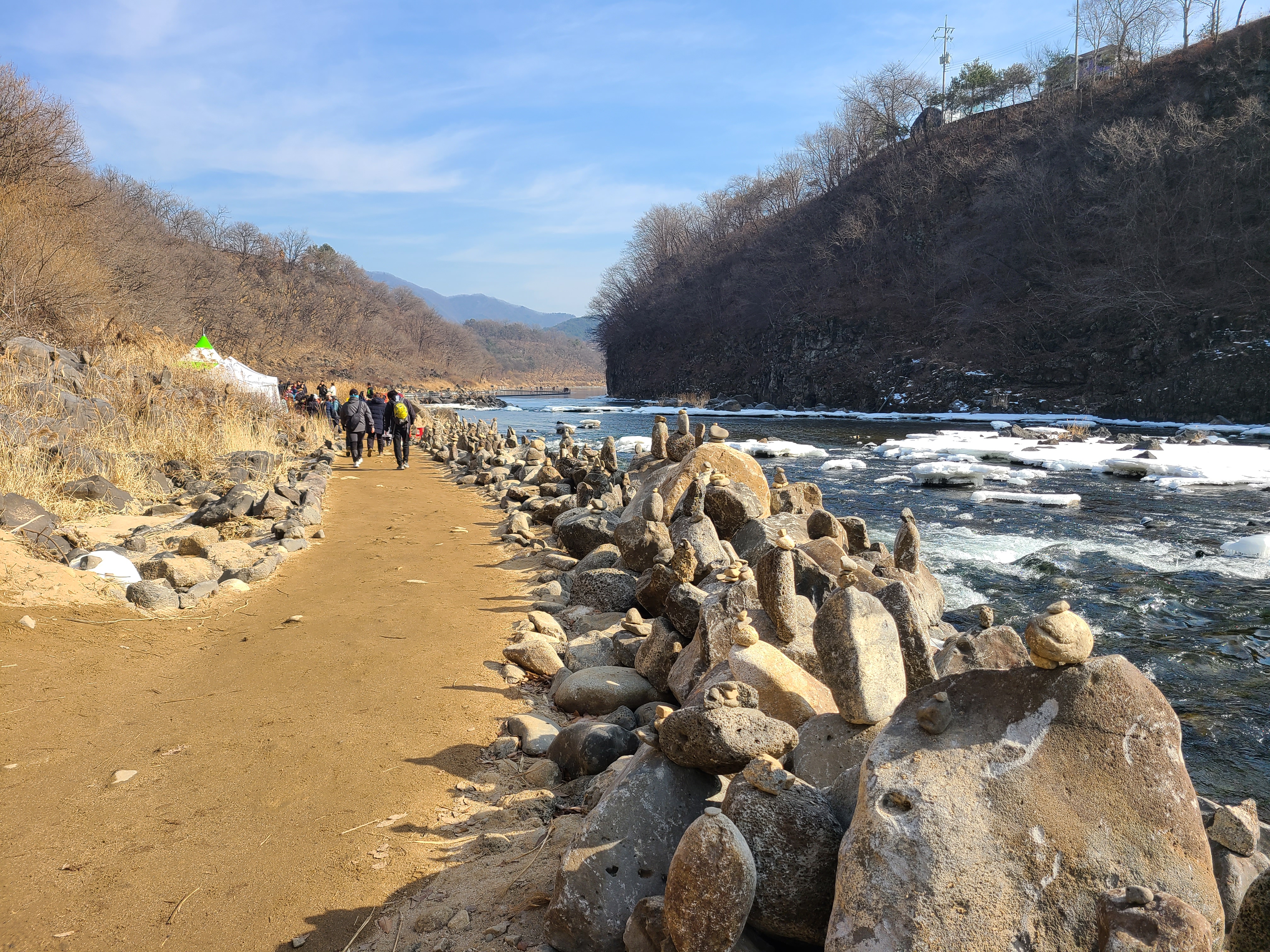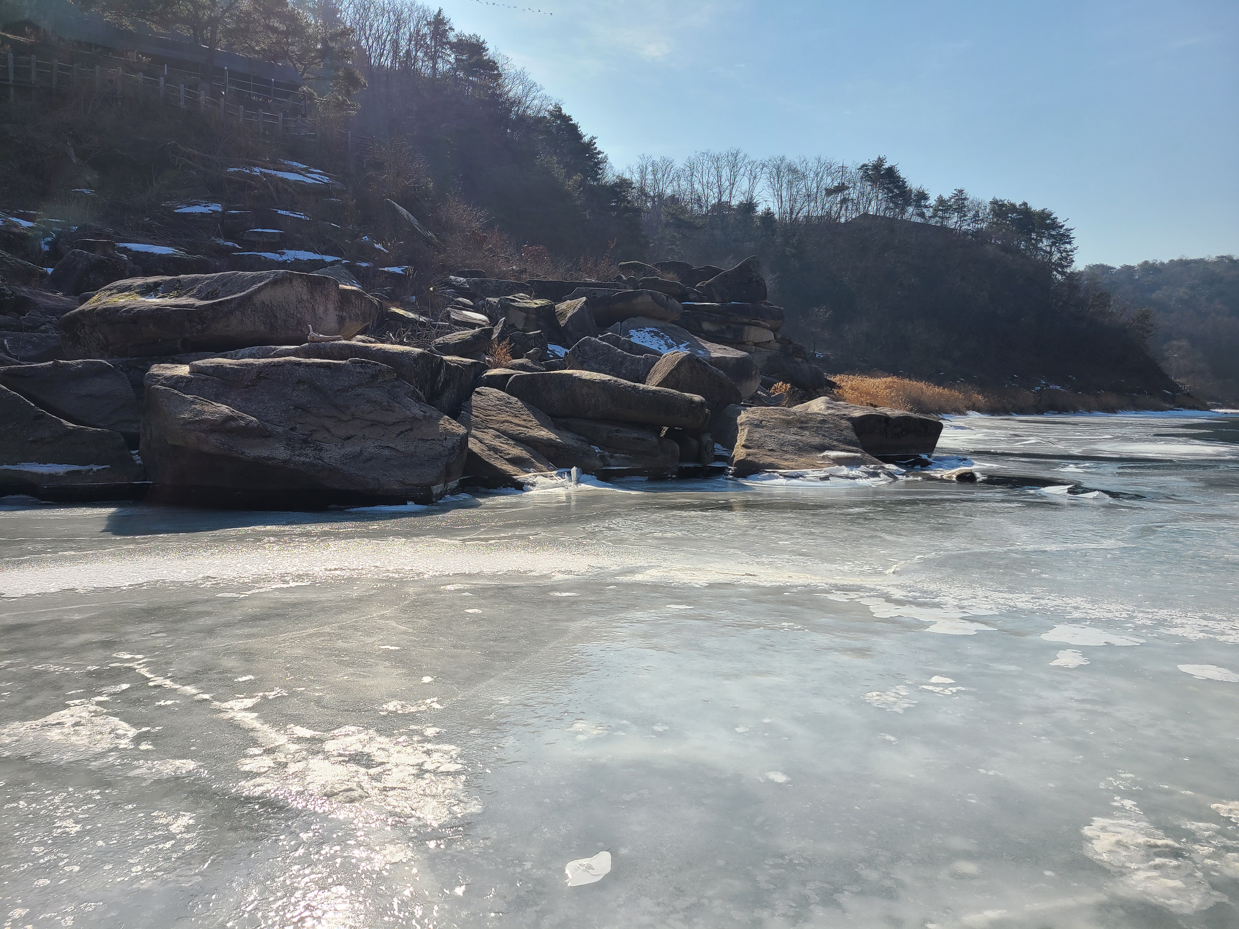 지난주엔 강추위에 전국이 얼어붙어 있었는데 오늘은 다행히 날씨도 풀리고 하늘도 맑아서 더 할 수 없는 기분좋은 하루를 보냈습니다. 순담계곡에서 태봉교 방향으로 물길을 거스르며 풀코스를 걸었는데요 가면서 생각이 오전에 걷는다면 해를 등지고 걷는 이 방향이 사진찍고 구경하기에 좋은것 같습니다.