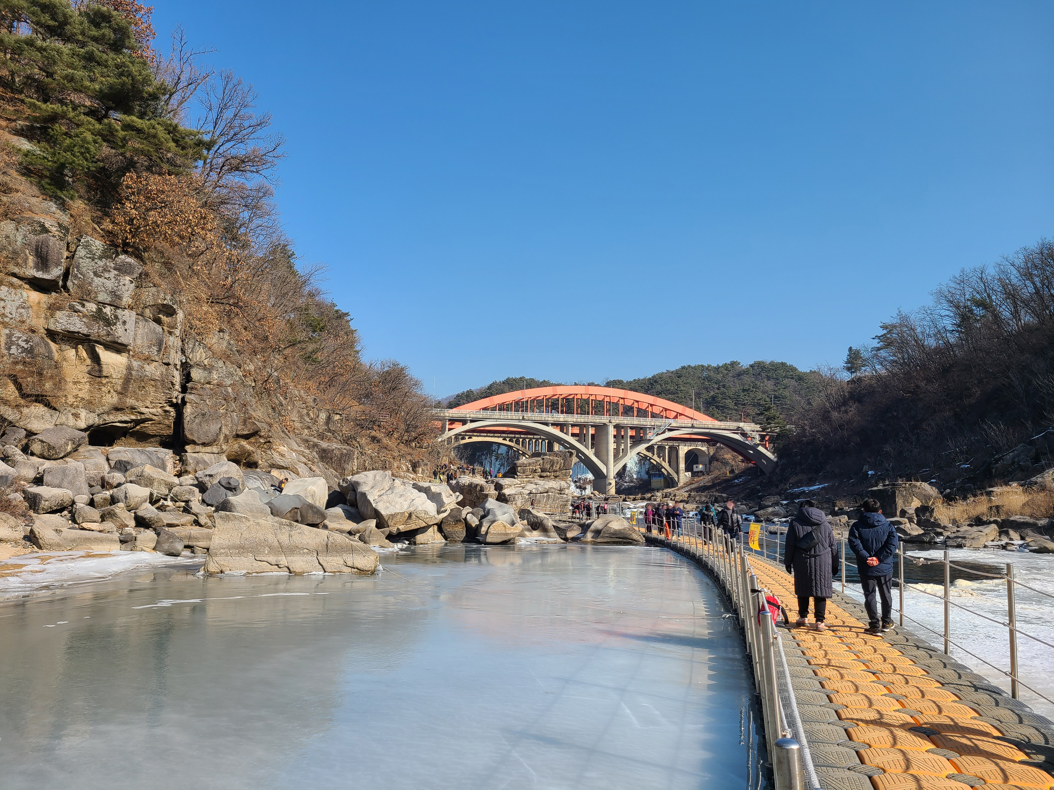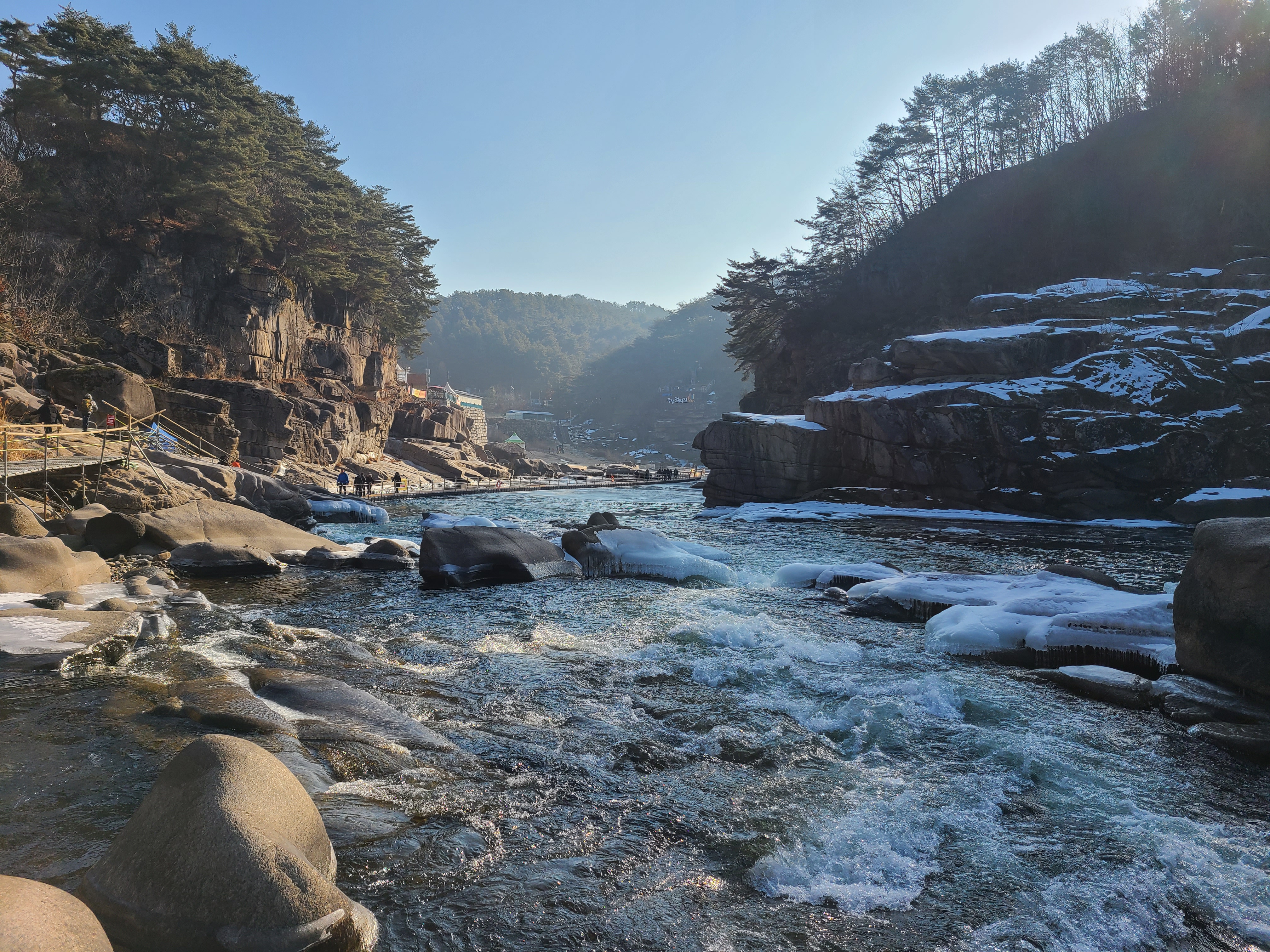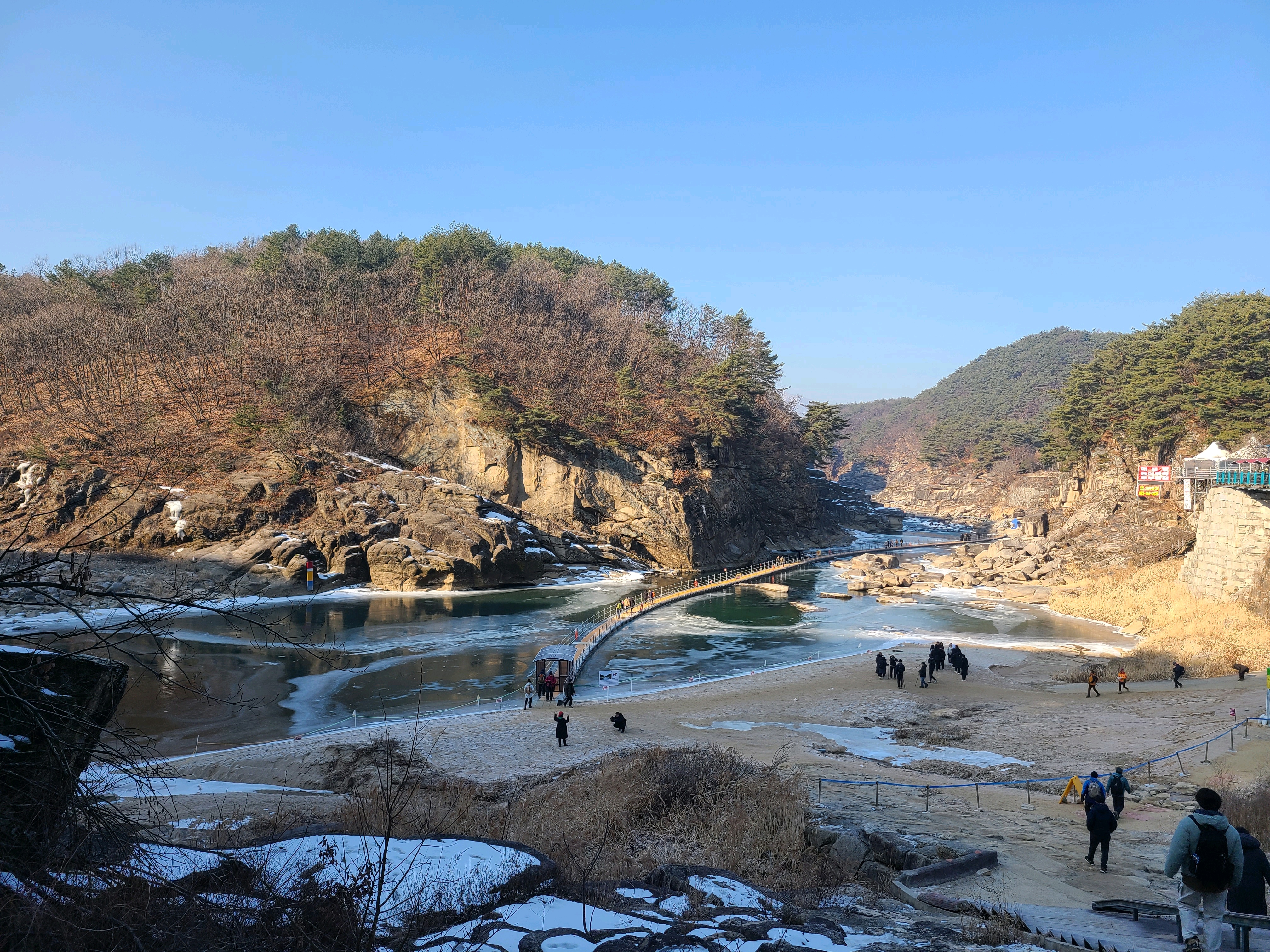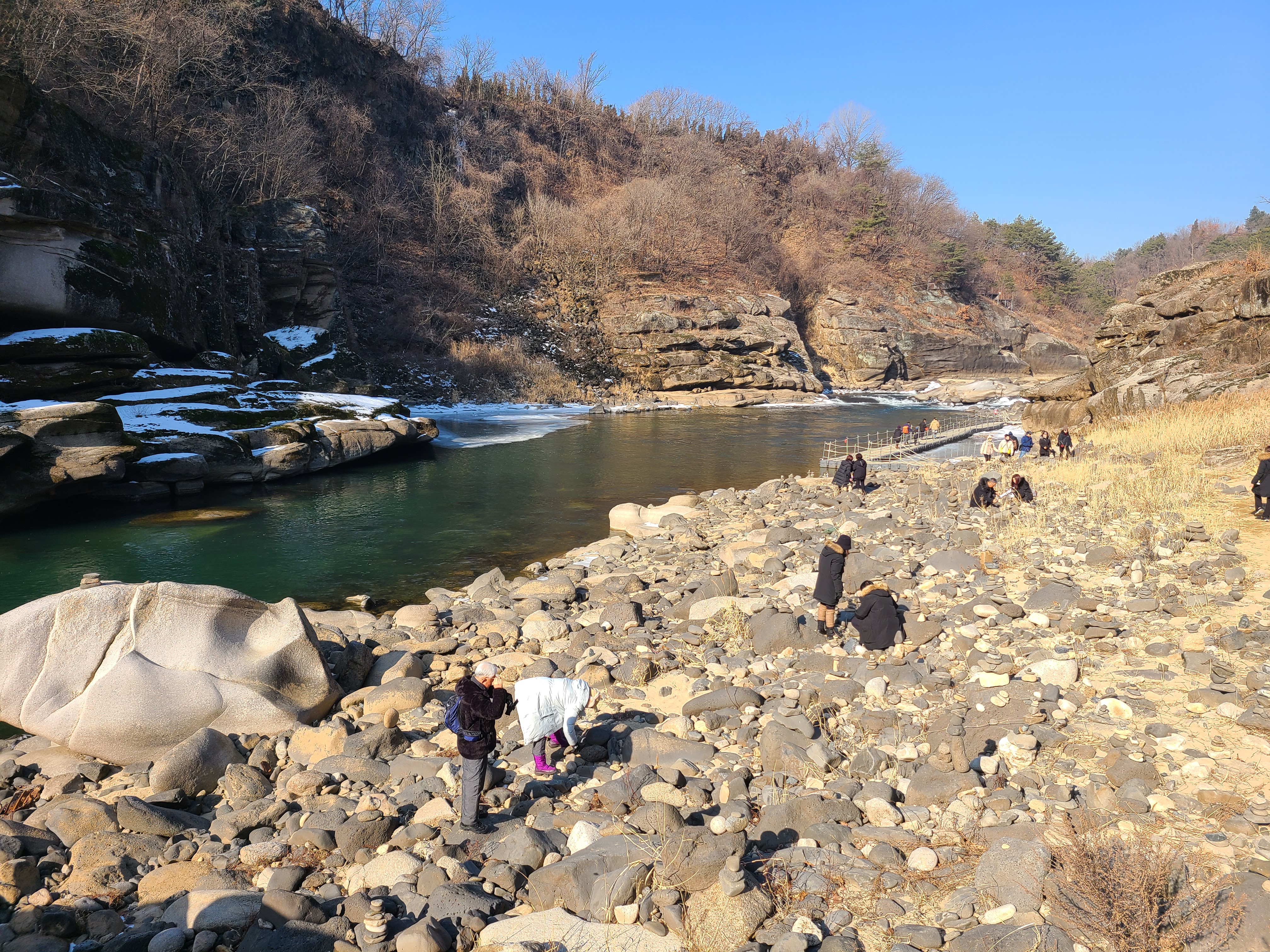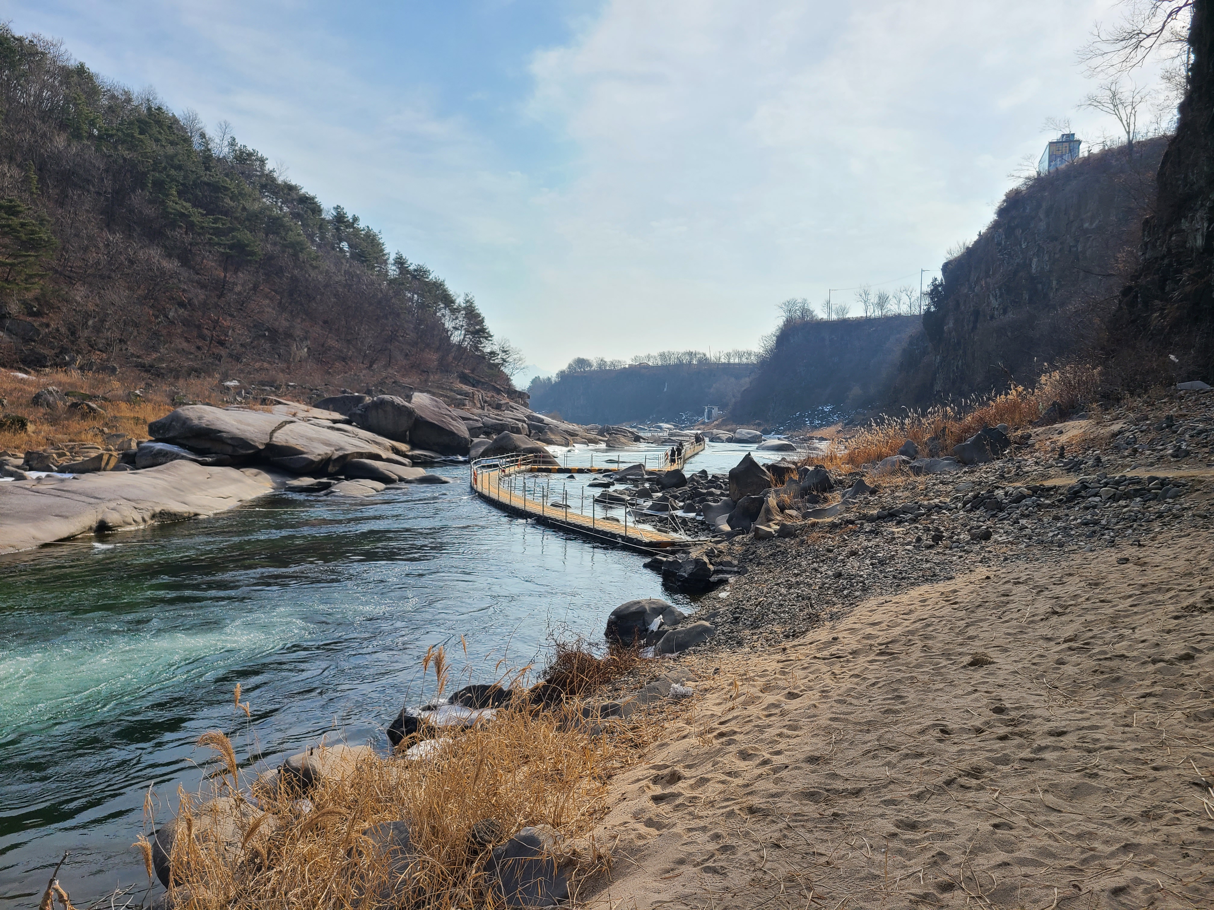 지난주엔 강추위에 전국이 얼어붙어 있었는데 오늘은 다행히 날씨도 풀리고 하늘도 맑아서 더 할 수 없는 기분좋은 하루를 보냈습니다. 순담계곡에서 태봉교 방향으로 물길을 거스르며 풀코스를 걸었는데요 가면서 생각이 오전에 걷는다면 해를 등지고 걷는 이 방향이 사진찍고 구경하기에 좋은것 같습니다.