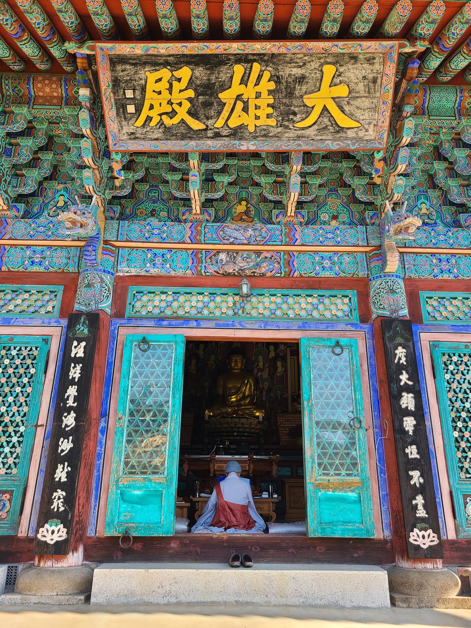 한 계단 내려오니 자연석과 함께 석가탑, 관음전, 대웅전이 보인다. 석가탑 뒤편으로 칠성, 산신, 독성을 모신 삼성각이 있다.