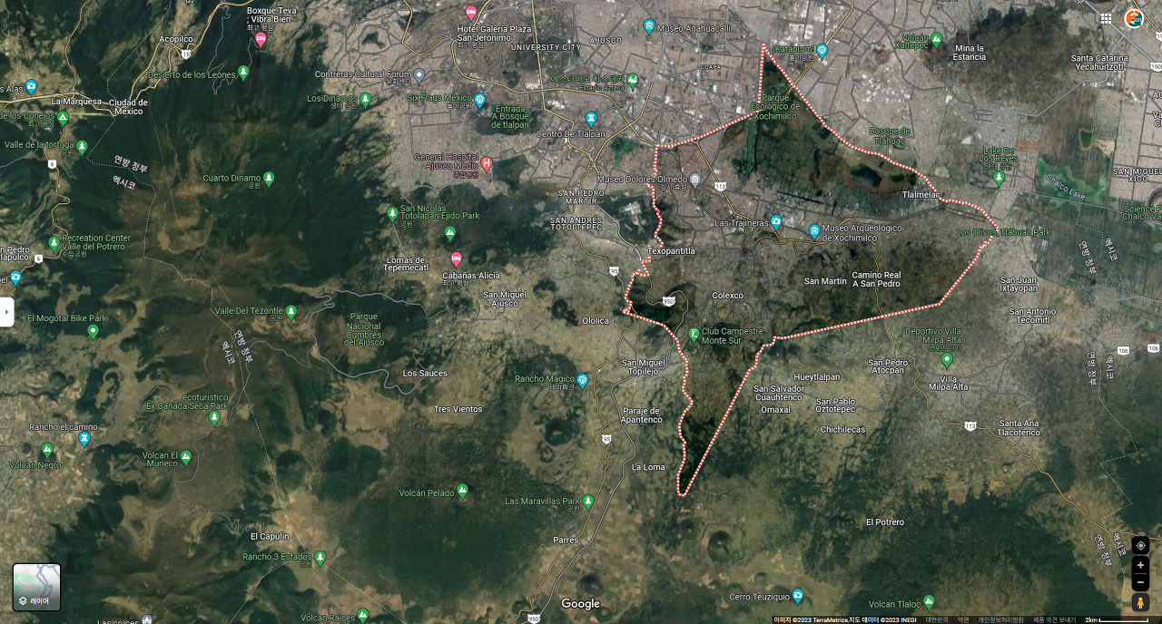 곽준빈의세계기사식당 영상에서 "물에 흙을 채워 만든 경작지? 섬?"이라는 "치남파"가 흥미로워서 지도여행을 떠나 봅니다. 이곳은 유네스코 세계유산으로 등제된 지역으로 멕시코시티의 역사지구와 소치밀코의 호숫가지역으로 구분되는데, 이중에 호숫가지역이 "치남파"라는 별칭이자 농법으로 불리고 있네요.